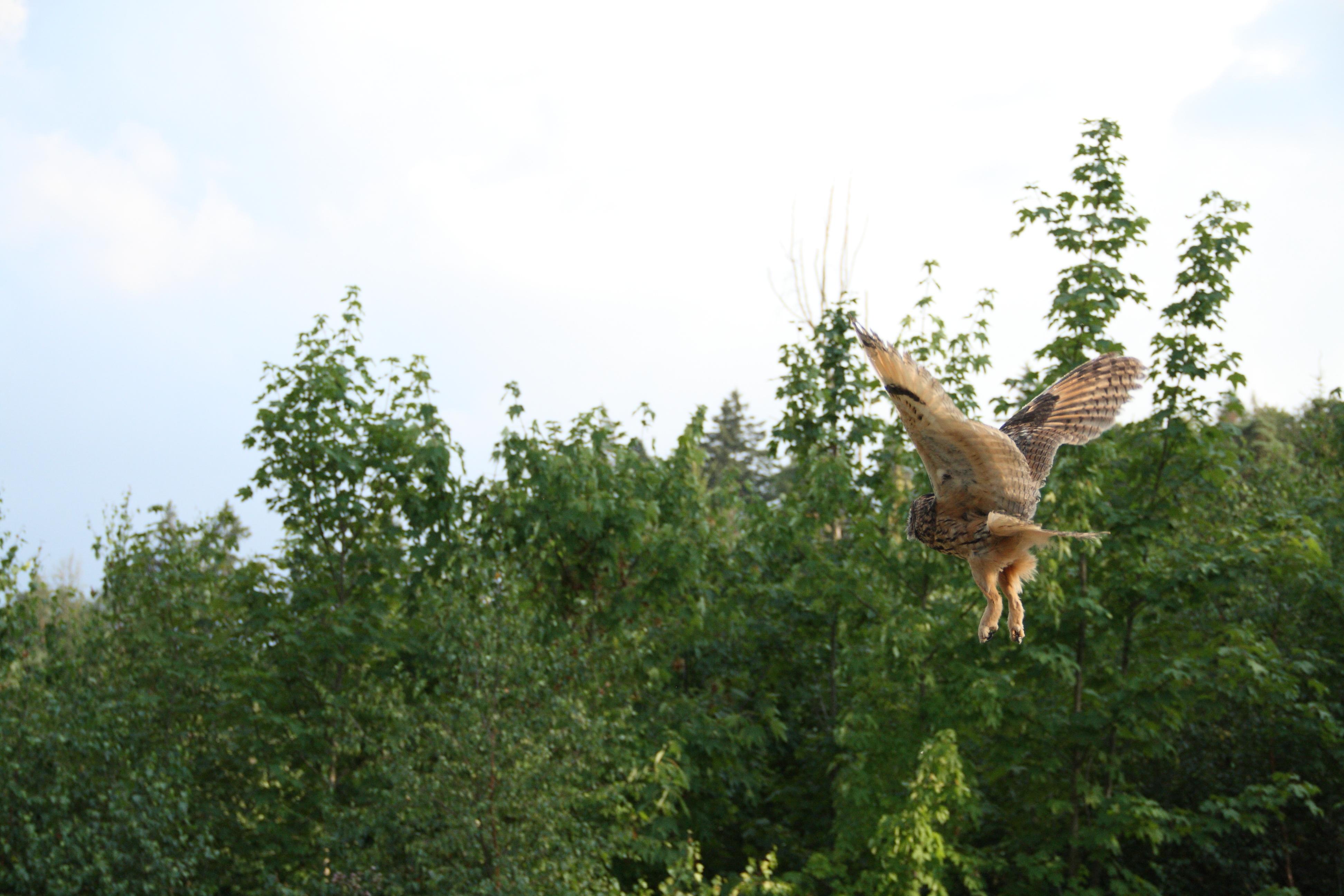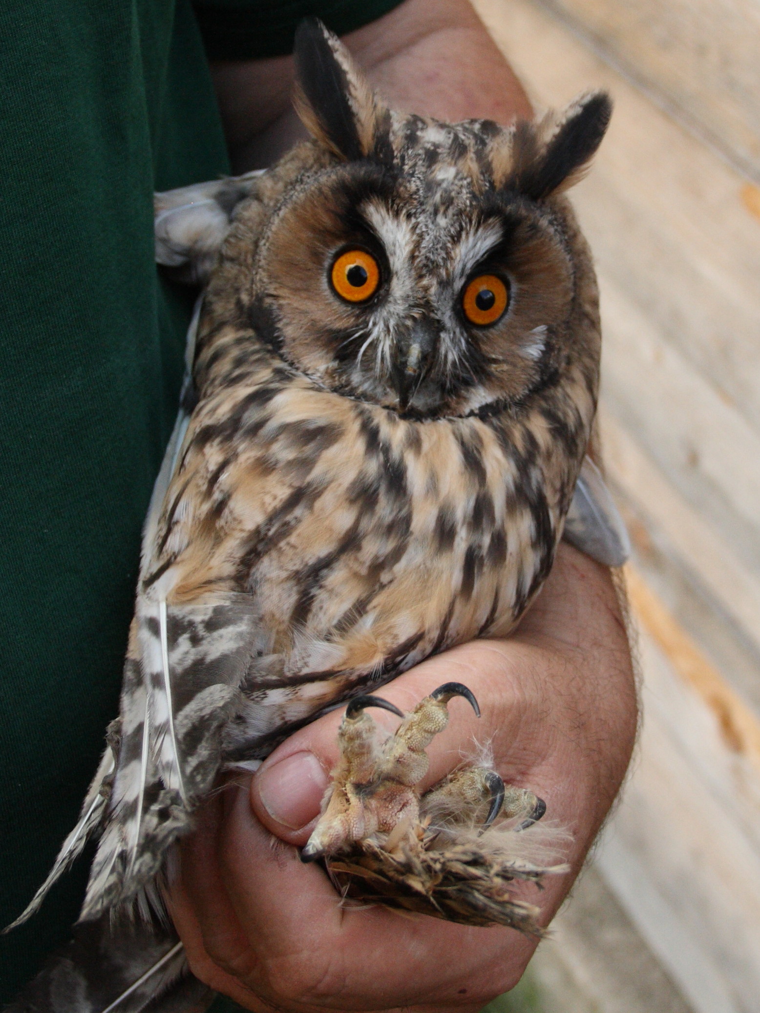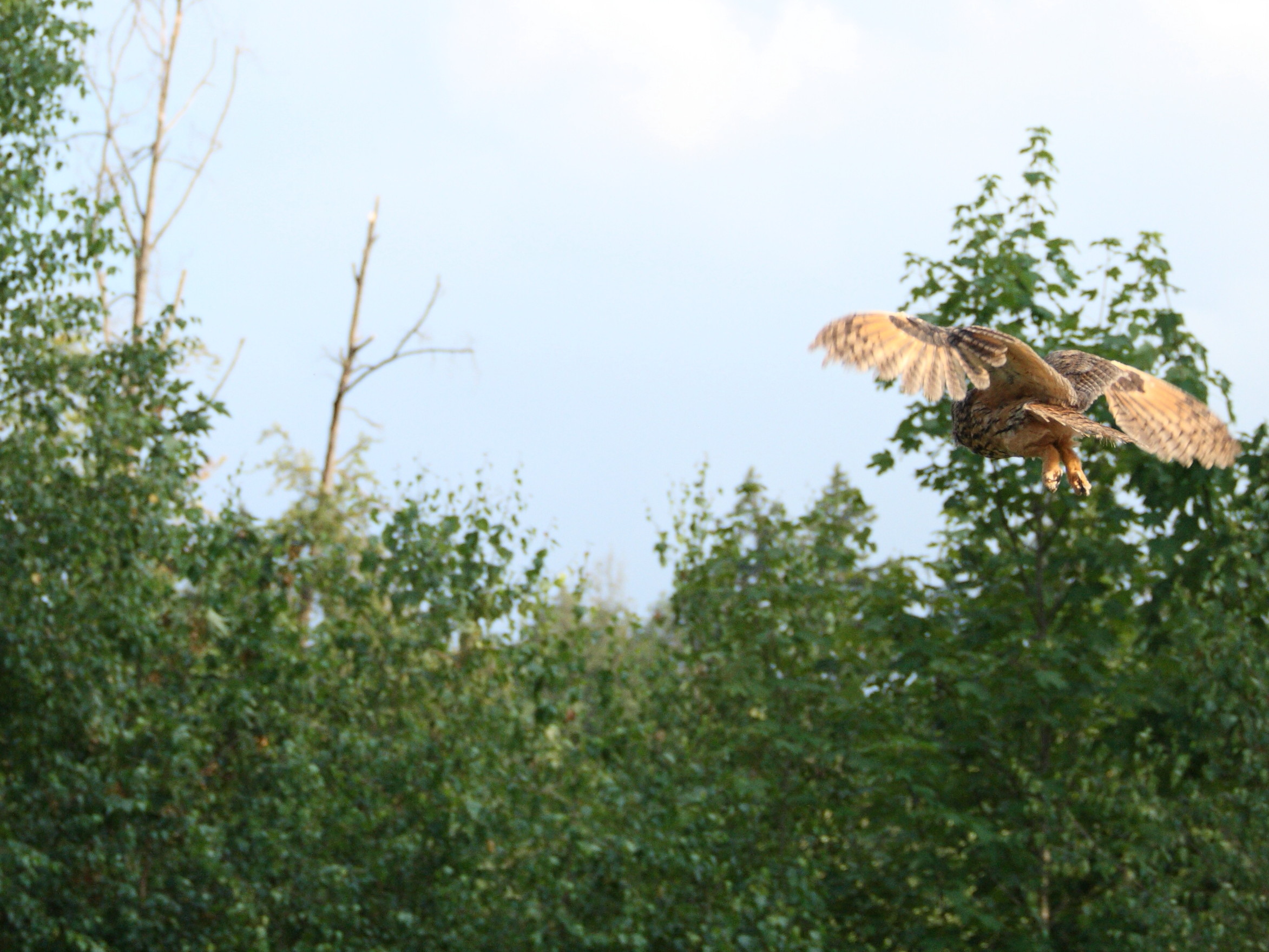 Wir hatten einen Europäischen Uhu in unsere Obhut, der von einem Auto angefahren wurde. Der Vogel hatte bei dem Unfall einige leichtere Verletzungen davongetragen, es ging ihm aber schon bald wieder besser. Jedoch wurde das Gefieder durch den Unfall so stark beschädigt, dass er zwar fliegen, aber nicht jagen konnte. Ramponiertes Gefieder kann nur durch den natürlichen Prozess der Mauser wieder in Ordnung kommen, weshalb Uhu mindestens ein Jahr bei uns bleiben musste, bis die erste Mauser erfolge. Erst dann konnten wir feststellen, wie es um seine Flugfähigkeit bestellt ist. Hätten wir festgestellt, dass er nach der ersten Mauser noch nicht für sich selbst sorgen könnte, dann wäre er weiter Gast bei uns geblieben. Der Uhu hatte jedoch Glück und hat ein wunderschönes Gefieder bekommen, sodass wir ihn ca. 20 Kilometer entfernt von der Station wieder in seinen natürlichen Lebensraum entlassen konnten.
